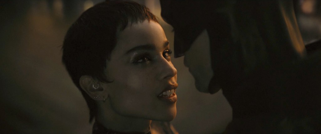 The facial work of Pattinson is so impressive with the eyes so white and it’s clear he’s losing his humanity and this is something I’m sure Kravitz’s Kyle people bring back.